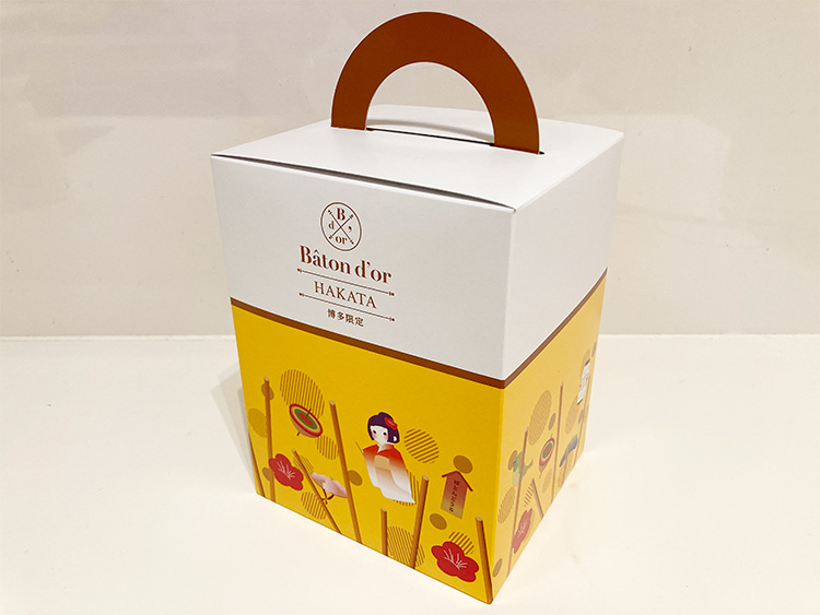 バトンドールとはフランス語で『黄金のスティック』のこと。バターの芳醇な香りと個性ある豊かな香りと個性ある豊かな甘みが重なり合うプレミアムなスティックスイーツです。かわいいイラストが散りばめられた博多限定ボックスの中に定番商品やおすすめ商品を4種類詰合せました。