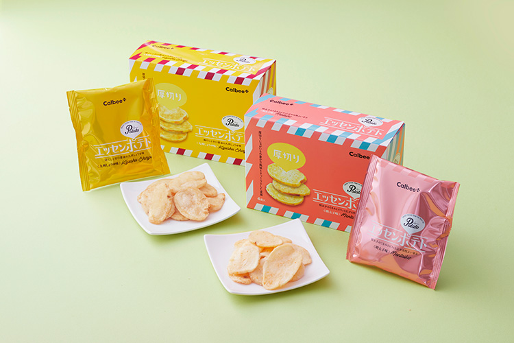 オススメは国産じゃがいもの厚切りカットが魅力のエッセンポテト。包装もポップでかわいいのでちょっとしたギフトやお手土産にお使いいただけます。中でも九州しょう油味、明太子味は博多阪急限定品です。