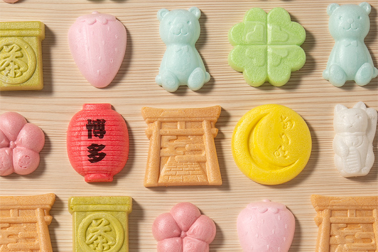 「隆勝堂」は福岡のお茶どころ八女でうまれたお菓子屋さん。お茶を使った和洋菓子とあわせておすすめするのが、博多限定販売の博多可愛菓です。様々なモチーフのデザイン最中はお土産にもお持たせにもお使いいただけます。