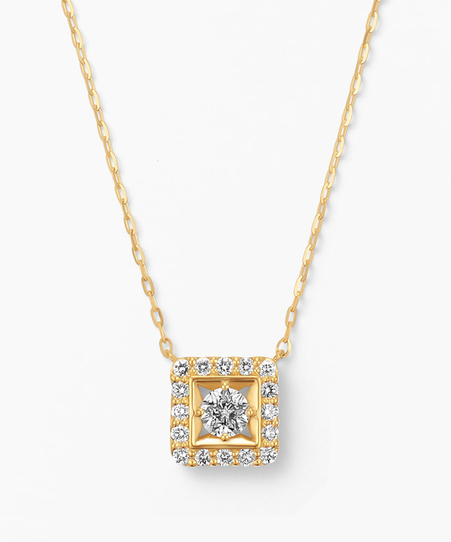 スクエアの端正なフォルムに “Wish upon a star®” ダイヤモンドが輝くノーブルなネックレスです。意志のある凛とした美しさと、希望を照らす静かな力を表現したデザインは、たどり着いた「入口」のその先には輝かしく明るい未来が待っている。そんなメッセージが込められたシリーズです。