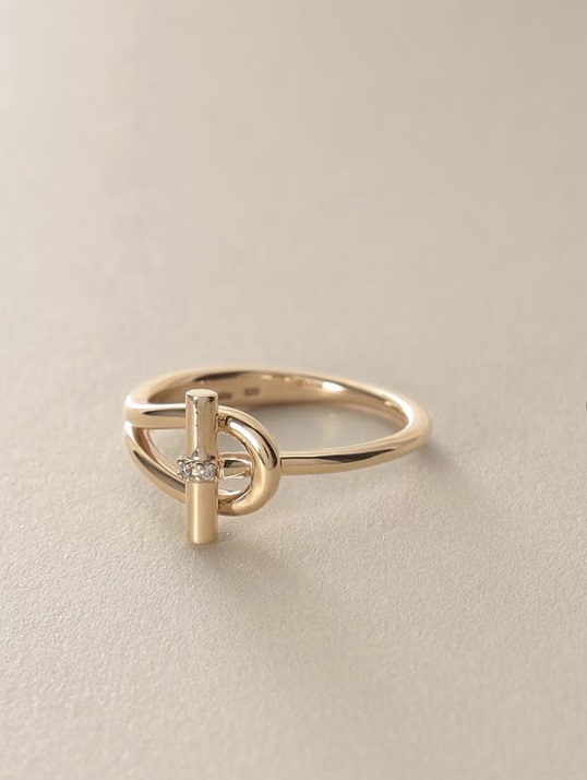 ダイヤモンドをセッティングしたマンテルパーツを使用したデザインリング。