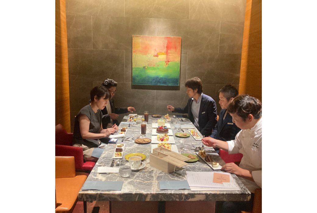 ペストリーシェフの中園様・セールス&マーケティング部長の原野様・料飲部マネージャーの立野様とのお打合せ。