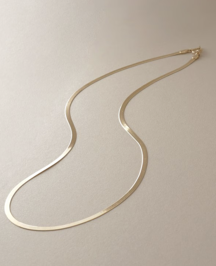 ボリューミーで重厚感がありながら、しなやかで上品な着け心地のスネークチェーン。削ぎ落されたデザインが上品な大人の着こなしに。
