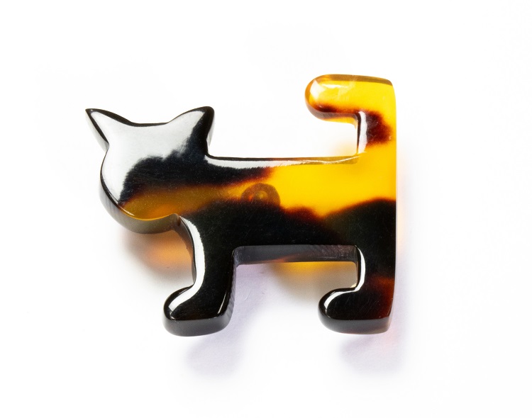 『べっ甲発祥の地・長崎から。べっ甲で作った『nagasaki-no neco』のトレードマーク、尾曲がりねこのピンブローチです。』