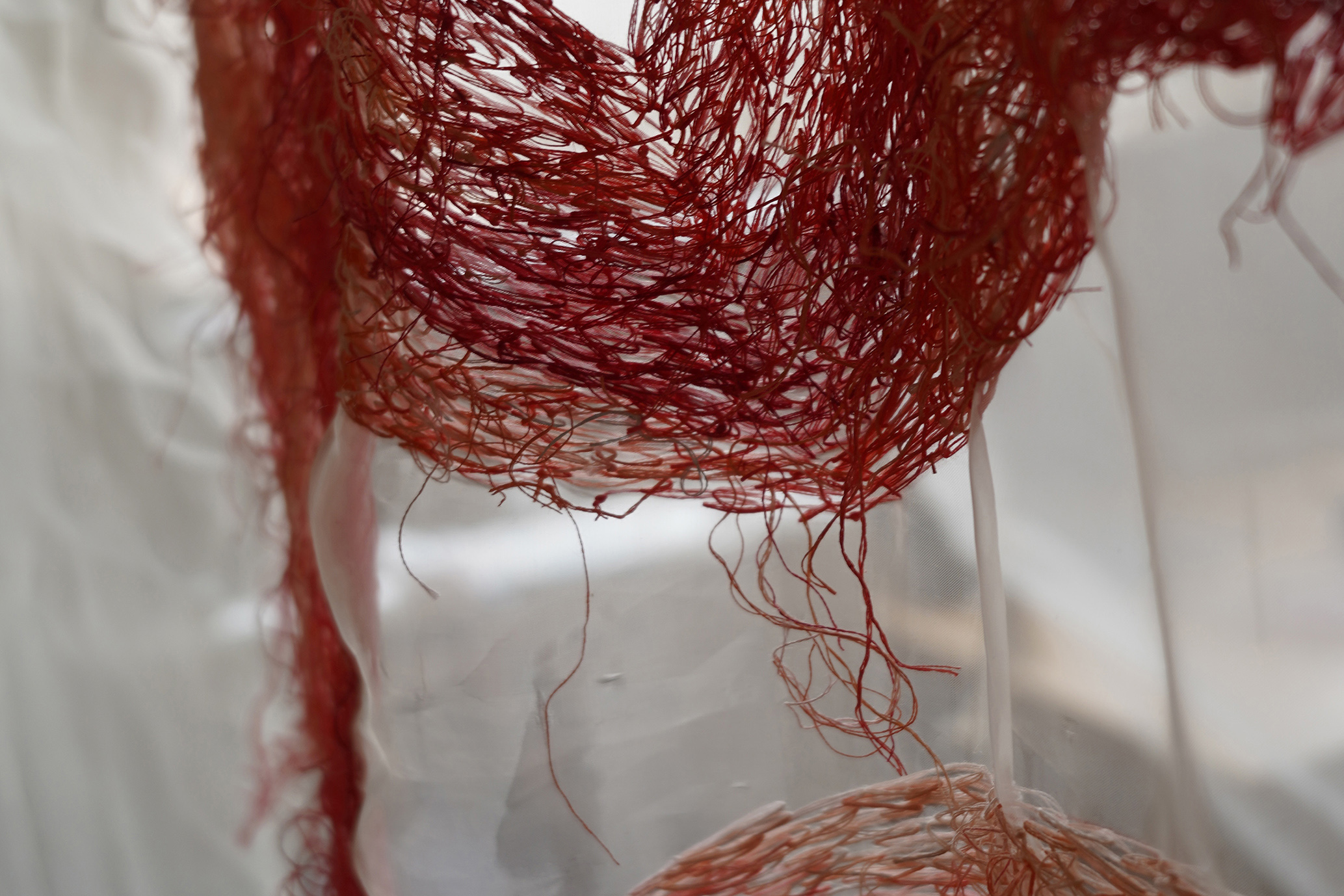 半針と糸を用いて、平面から立体、空間インスタレーションまで幅広く制作する刺繍アーティスト。自然や人間の感情、目に見えない気配を縫いとめるように、 刺繍を装飾を超えた表現手段として探求しています。