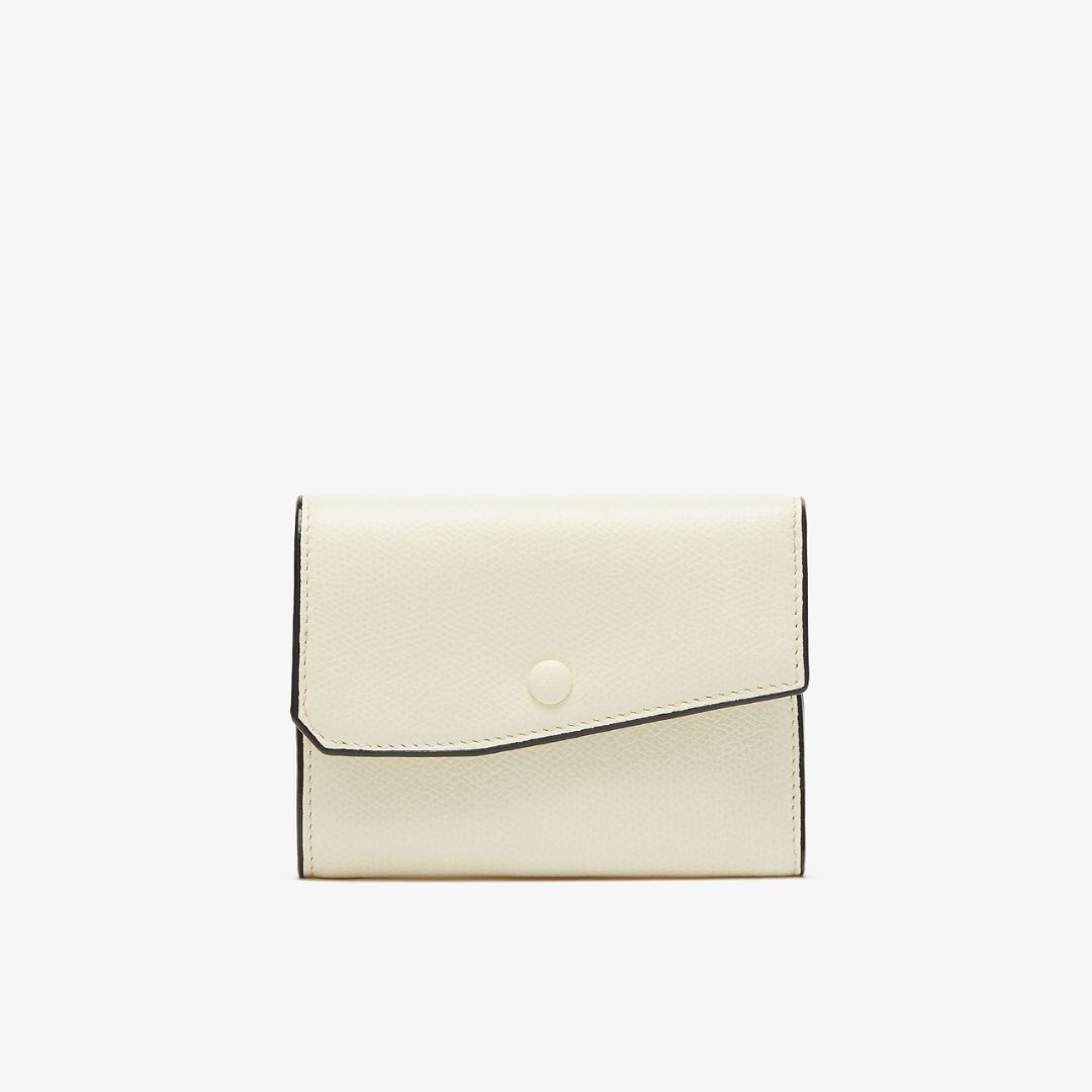 長方形のクロージャー付きの"イジィデ ウォレット"は、「ヴァレクストラ」のスタイルをハンディな折りたたみ式の形に凝縮し、カードや小銭、紙幣が入る十分なスペースを確保しています。