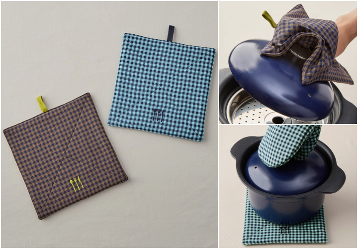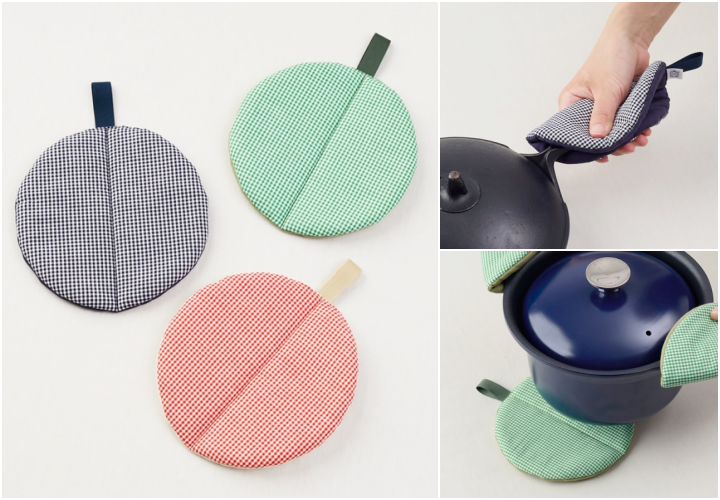 こちらも、折り曲げれば鍋つかみとして使える便利なアイテム。 裏側は無地のリバーシブル仕様なので、その日の気分や食卓のコーディネートに合わせてお楽しみいただけます。