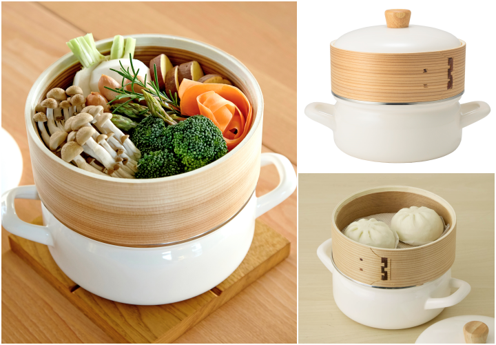 こちらは、素材の天然木と竹が余分な水分を適度に吸収し、食材をやさしくふんわりと蒸しあげてくれる優れもの。蒸気で加熱することで、野菜の甘みやお肉の旨みなど、食材本来の味が際立ちます。