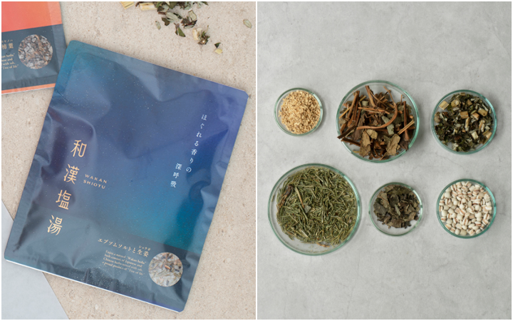 古くから親しまれてきた和漢ハーブの力と、ソルトを組み合わせた「和漢塩湯」。エプソムソルトに加え、ショウガやスギナといった和漢植物が、冷えた身体を芯からしっかりと温めてくれます。