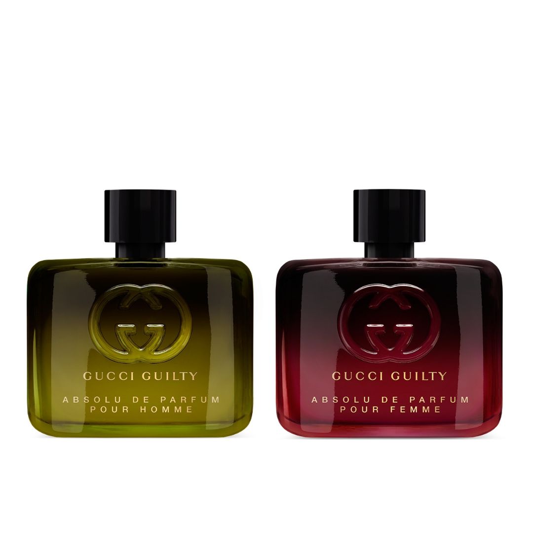 グッチ ビューティが贈る、魅惑的なフレグランスデュオ"グッチ ギルティ アプソリュ ド パルファム プールオム & プールファム"が登場。プールオムには 、ラム アコードの魅惑的な深みを、プールファムには、コーヒー アマレット アコードのベルベットのようにまろやかで温かな芳香を。どちらも、身にまとう人を親密でエレガントな世界へと誘います。