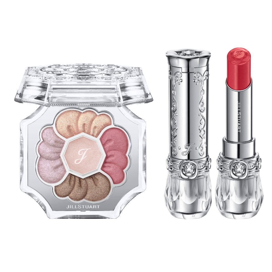 表情に華やかさを添えながら、肌をより美しく引き立てるジューシーなキャンディオレンジのブラッシュと、シアーに色づきながら、溢れでるようなつややかさで唇を彩るメロウピンクのリップスティック。