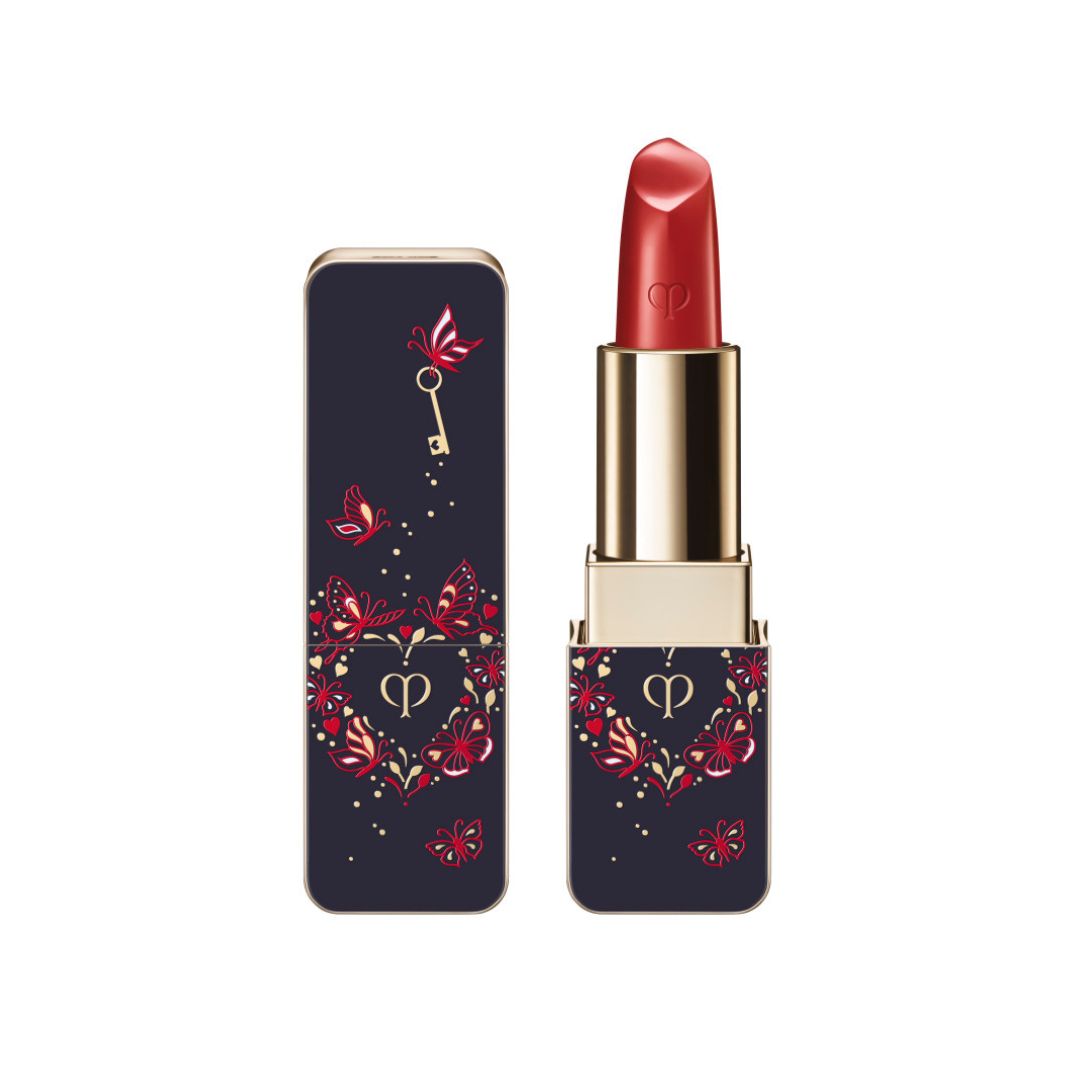 輝きと愛を振りまきながら、蝶が愛をアンロックする限定デザイン。ひと塗りで艶やかな唇に仕上げるリップスティック。