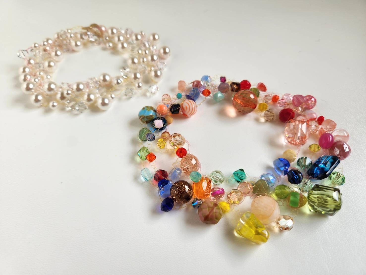 薬学博士のミリィカレガリが生み出すネックレスは染色されたワイヤーとカットガラスや天然石などを組み合わせたネックレスです。独自の製法により、非常に軽量でボリューム感がありながらも、顔周りを明るく華やかに見せてくれるネックレスです。