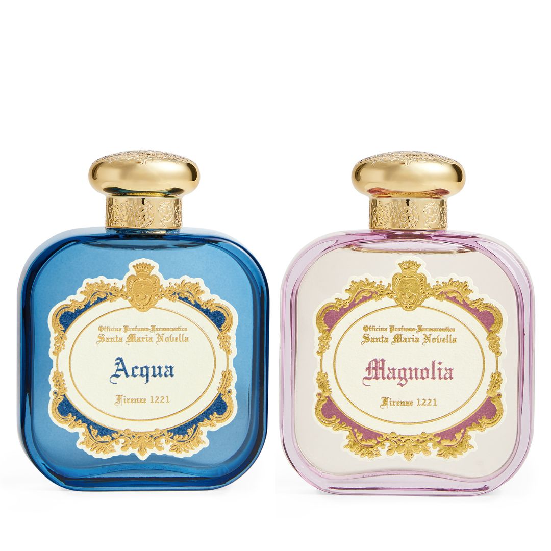 明るく透明感のあるトップノートから、フローラルなハートノート、繊細で包み込むようなベースノートへと変化する、澄んだ水のみずみずしさと躍動感を表現したアクアティック フローラルの香り「アクア」と、ホワイトローズとゼラニウムの艶やかな香りから始まり、マグノリア・グランディフローラのミドルノートが多層的な深みを与えるフローラルな香り「マグノリア」。