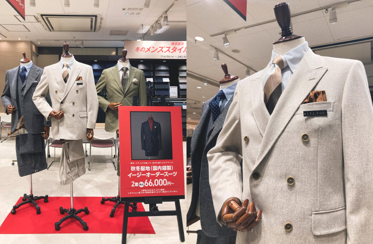 有名イタリアブランドの上質ウール生地を使用した“Made in Japan”の上質さとお買得感を兼ね備えた、国内縫製「Noumi」のスーツ、ジャケット、コートをご用意してます。