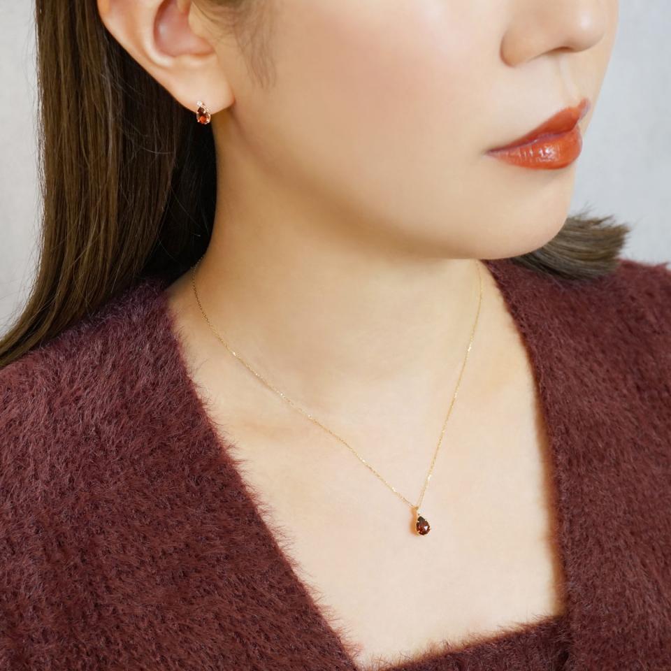 ガーネットの深い輝きとトパーズの煌めきが調和する、1月の誕生石ネックレス。さらりとなじむシンプルなデザインで、オフィスからプライベートまでシーンレスにご着用いただけます。さり気ない存在感で胸元を上品に彩り、毎日のスタイリングに華やかさを添えてくれる優秀なアイテムです。