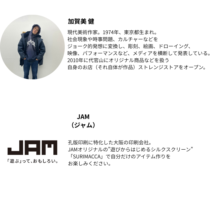 現代美術作家加賀美 健さんデザインの文字5パターンとお好きな素材6種類を