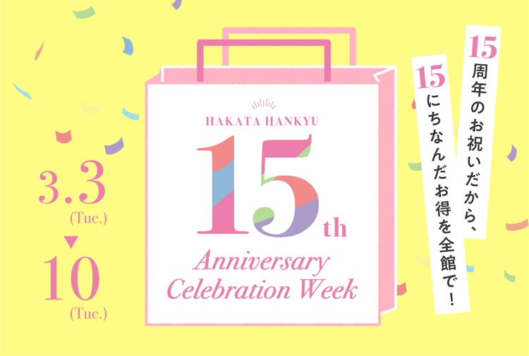 おかげさまで博多阪急は3月3日(火)、15周年を迎えます。