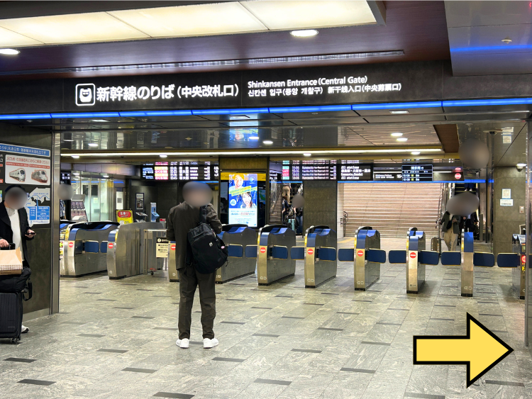 ▼新幹線のりば(中央改札口)からのアクセス