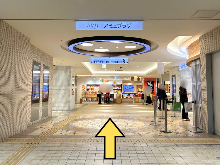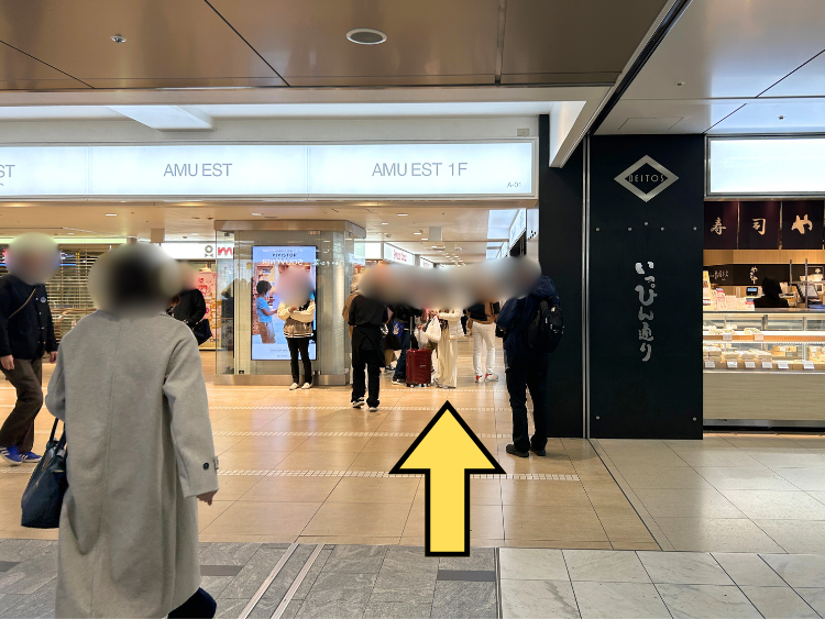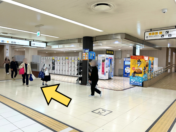 ①改札口を正面に見て、矢印の方向へ進みます。