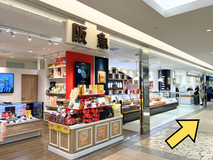 ④まっすぐ進むと、阪急ロゴの柱が見えてきます。