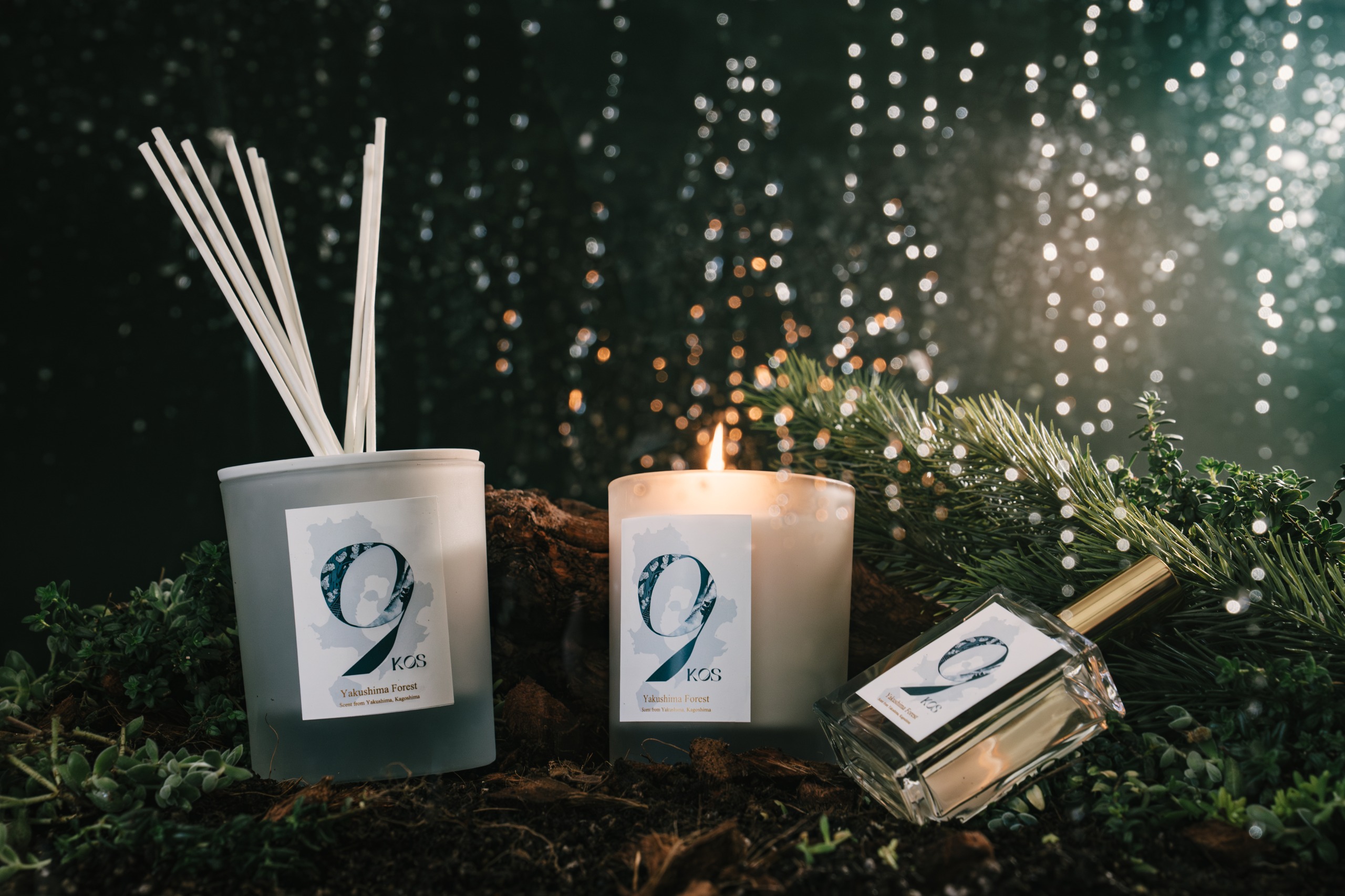 「9KOS(ナインコース)」は、日本・九州の魅力を詰め込んだサスティナブルなフレグランスコレクションです。九州の大自然や情景・文化・歴史から得た知恵やインスピレーションを香りで表現しています。