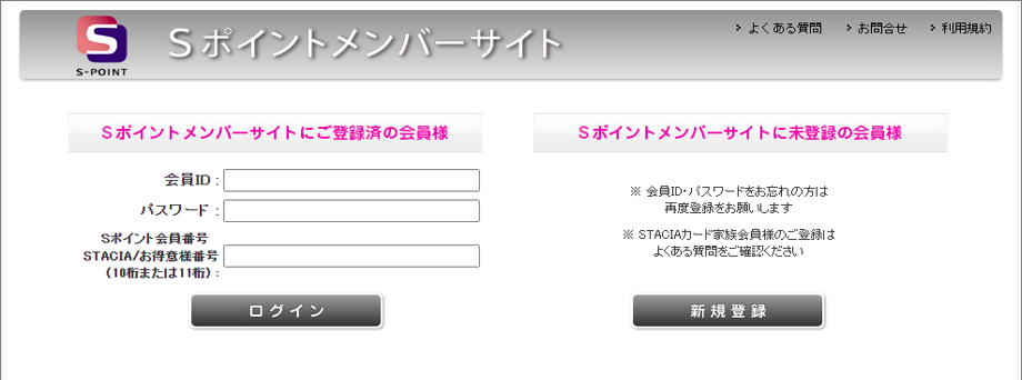 (1) Sポイントメンバーサイト(外部サイト)にアクセスし、「新規登録」を押す。