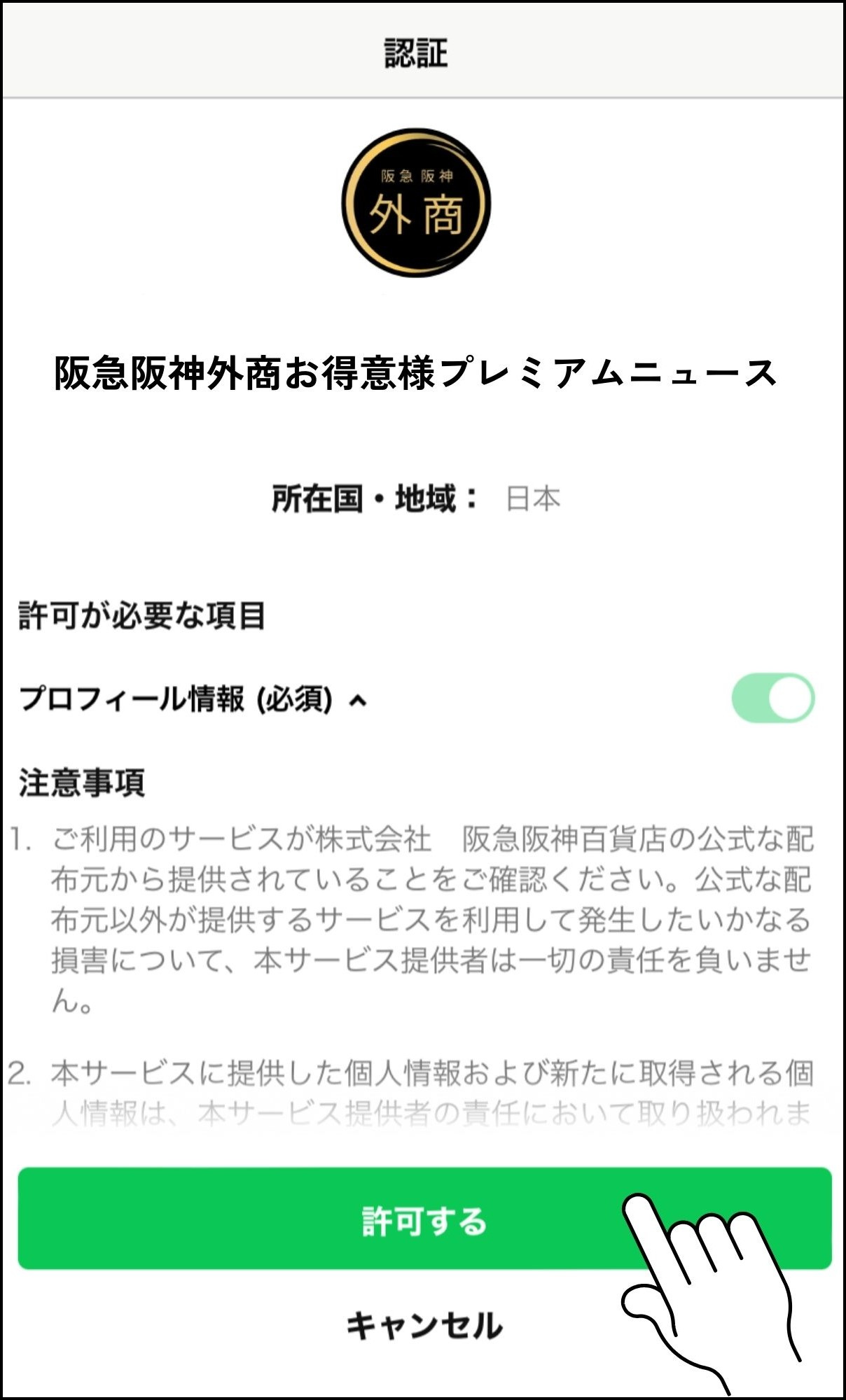 ②初回友だち追加の際に、こちらの画面が表示されますので “許可する”をタップしてください。