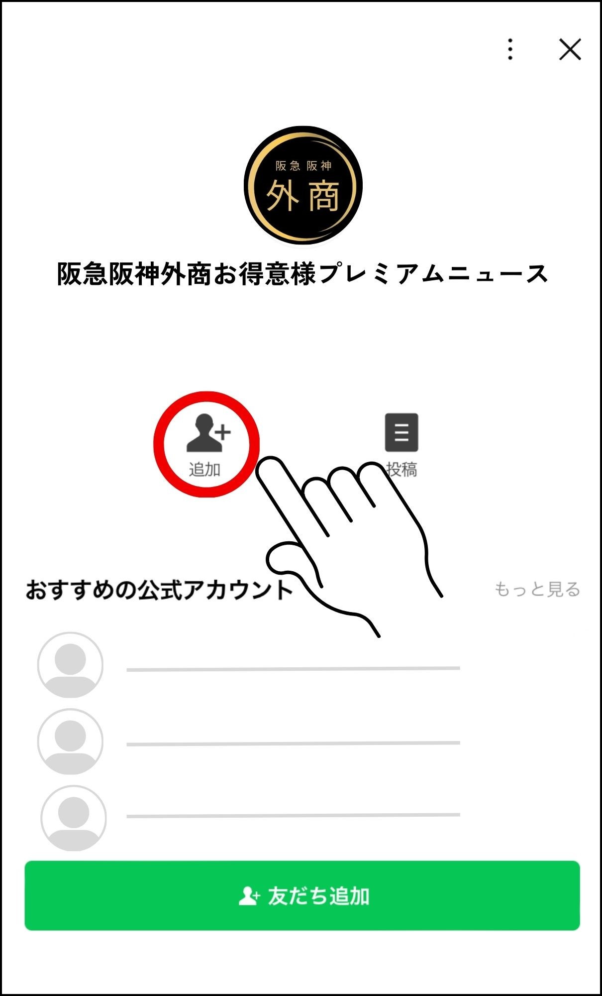 ③公式LINEプロフィール画面にある“追加”ボタンをタップしてください。