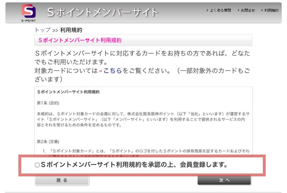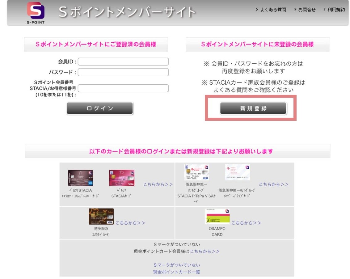 ①Sポイントメンバーサイトへアクセス:"新規登録"を選択