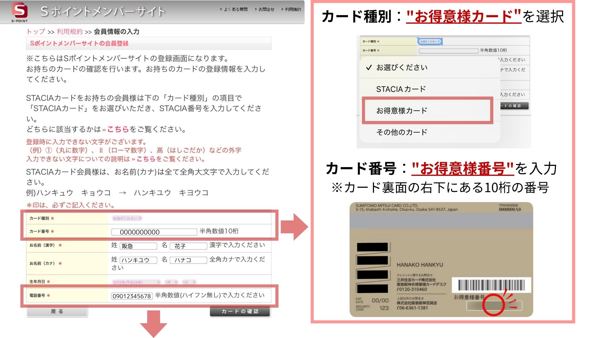 ③会員情報を入力:必要事項を入力し、カードの登録をクリック