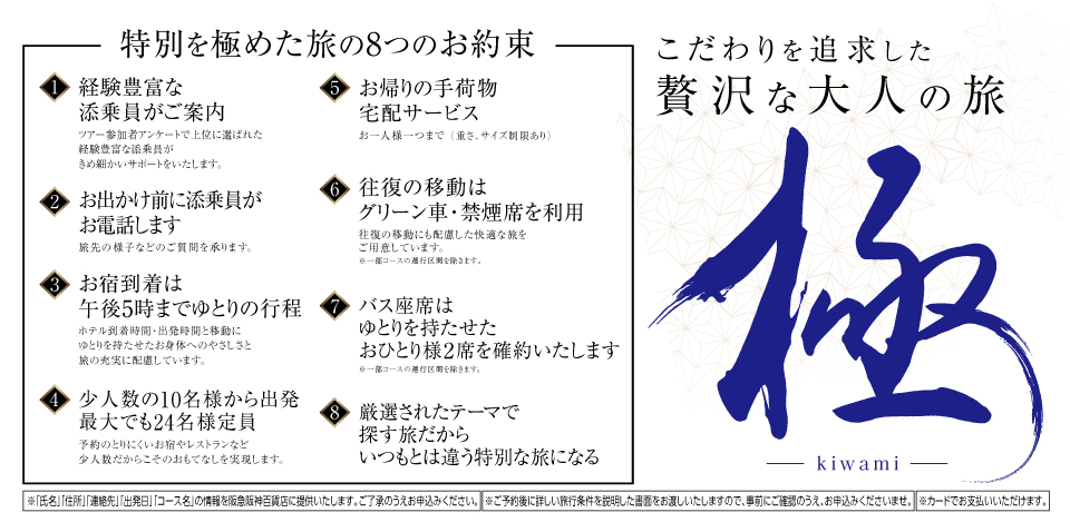 阪急交通社が提供する、こだわりを追求した贅沢な大人の旅"極-Kiwami-"より、外商お得意様へぴったりの『旅』をピックアップしてご紹介いたします。