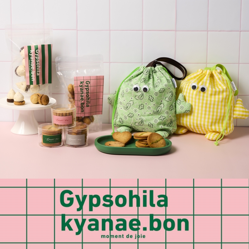 日々のライフスタイルに馴染み愛用できる“良いもの”をお届けする「Gypsohila」のアイコニックな巾着やランチバッグ、食感や味にこだわりながらシンプルでまた食べたくなるお菓子作りを目指す「kyanae.bon」のクッキーなどをラインアップいたしました。