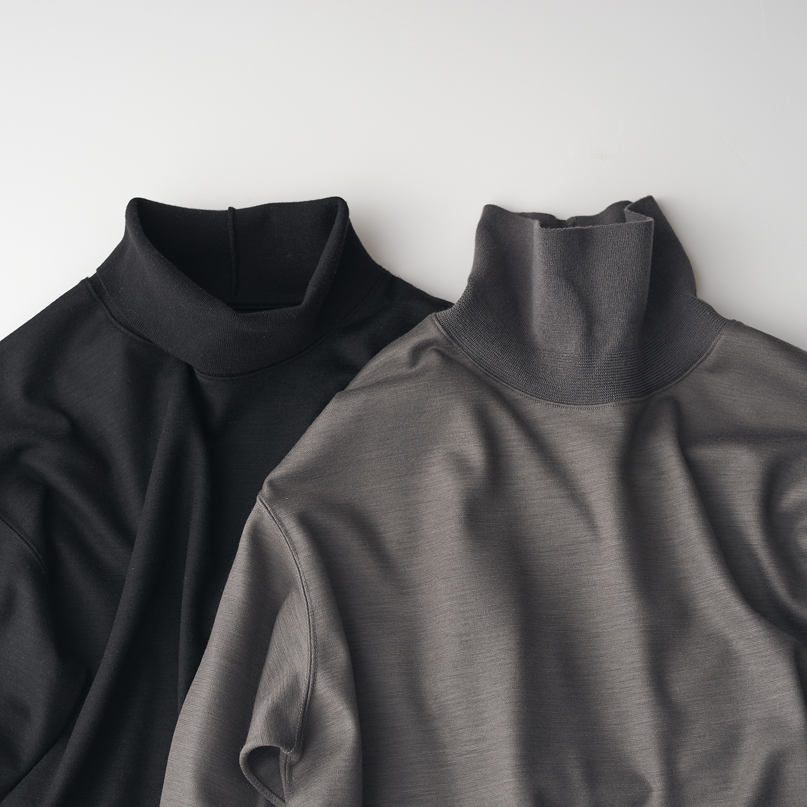 オーストラリア産メリノウールのポンチジャージーを用いたタートルネックプルオーバー。