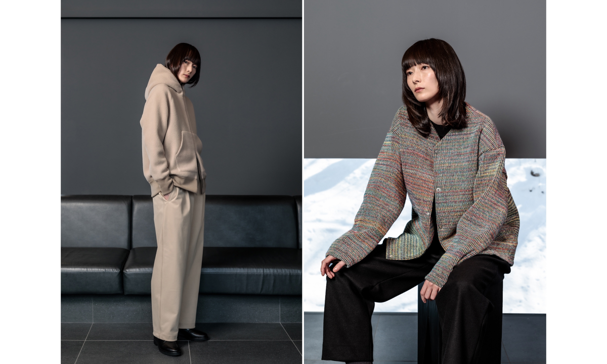 また、素材に存在感があるため、敢えてミニマルなノーカラーブルゾンのデザインに仕上げました。