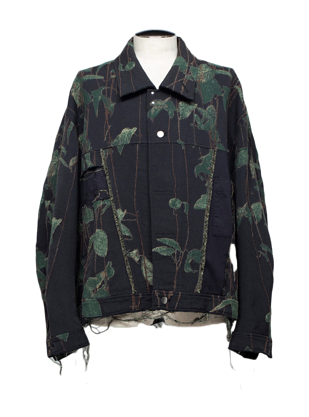 プリントのように見えるその柄はハンドペイントで、一点ずつ手書きです。何気なく繋がっているように見えるその柄は、熟練の職人による綿密な柄合わせです。不思議な風合いをしたその生地や加工は、職人とともに何回もテストを繰り返したどり着いた結論です。ものと情報が溢れかえっている現代に対して、我々は少量生産高付加価値な商品やアイデアで真の価値を提供していきたいと考えます。