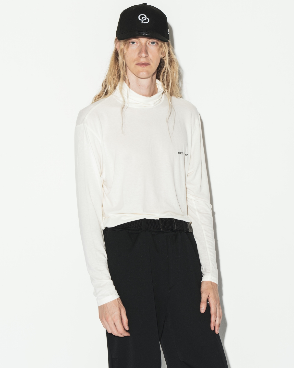 薄手なため、インナーにおすすめで、ネック部分はタートルのように折り返していただいても、くしゃっとラフにしていただいてもよく、襟元にもデザインを作ることができます。