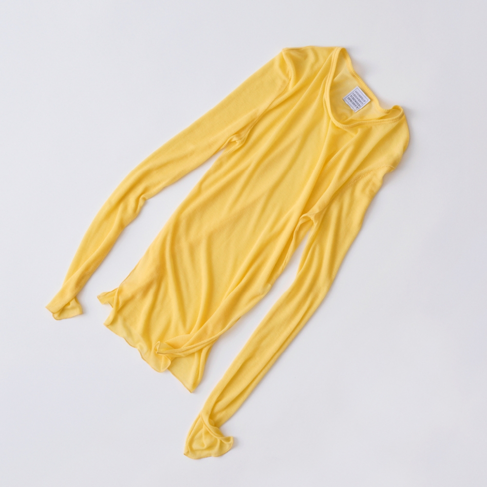 繊細でソフトな肌触りと透け感が特徴のクルーネックシアーロングスリーブT。