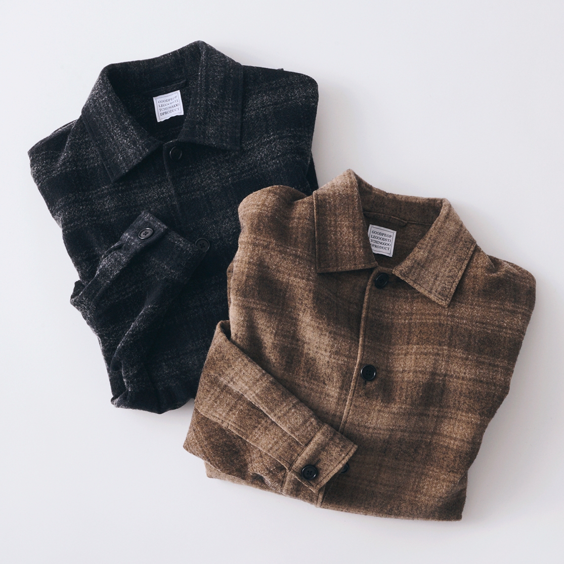ニードルパンチ生地を使用した、オーバーシャツ。