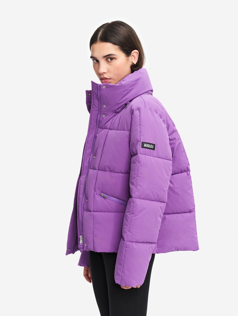 リサイクル素材のなか綿を使用したショートキルティングジャケット。