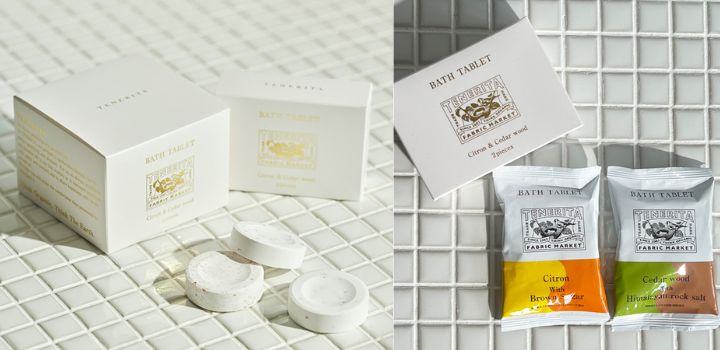 炭酸タイプの浴用化粧料。Ceder wood(シダーウッド)・Citron(シトロン)の2つの香りをセット。それぞれの恵みを溶け込ませたまろやかな乳白色のお湯とやさしい香りに包まれて、心地よいリラックスタイムを。センスのいいプチギフトにいかがでしょうか。
