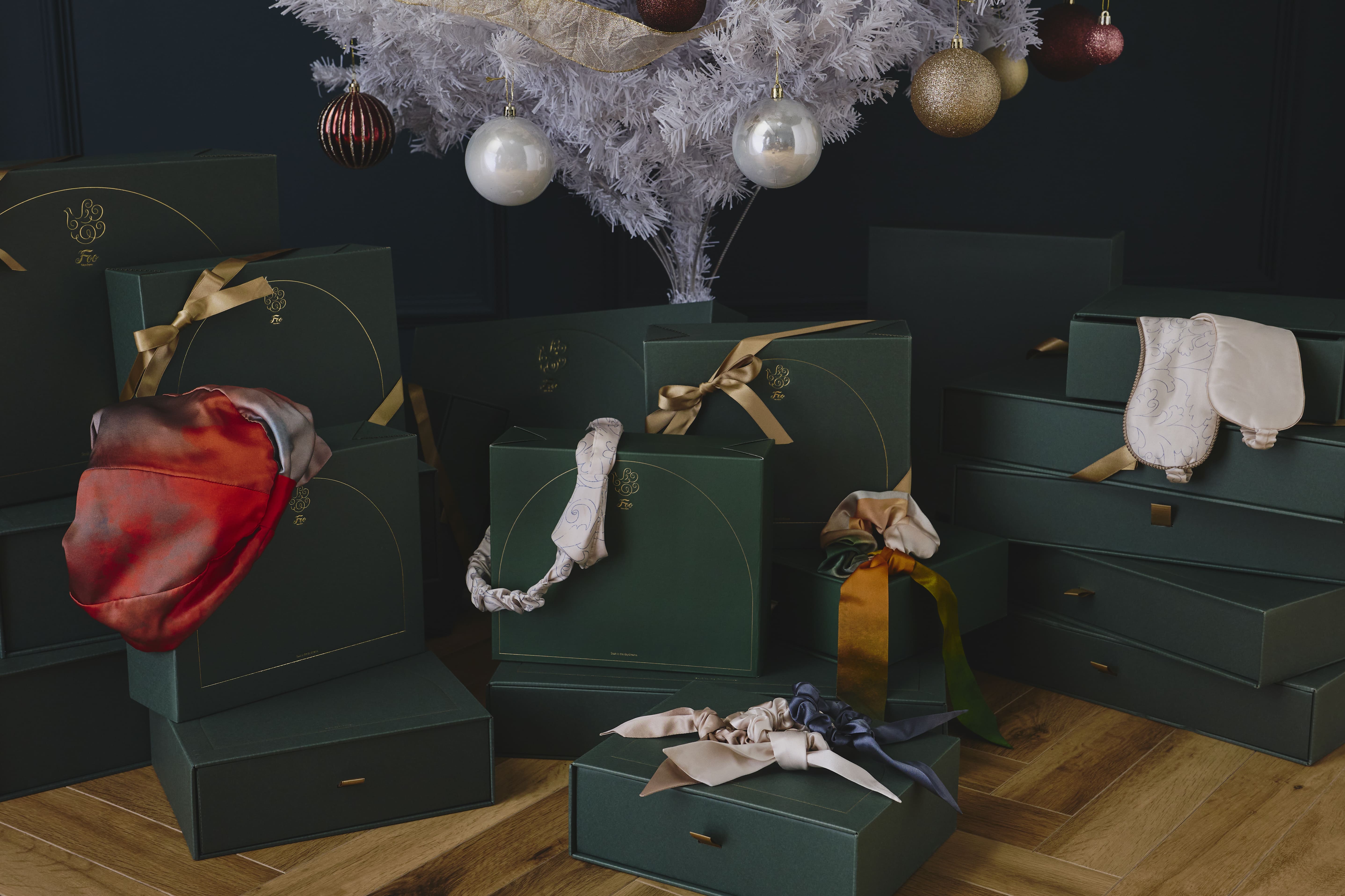 シルクを使用したFoo Tokyoの定番パジャマと同じ生地を使ったシルクリボンシュシュです。髪に優しい素材なので結び目の跡が付きにくく、長時間結んでいることによる髪の摩擦ダメージも軽減してくれます。お好きなスタイルを楽しめるよう、リボンは取り外しが可能。通常の専用ボックス付きアイテムの他に、数量限定でクリスマス特別ラッピングアイテムも展開します。クリスマスに感謝を込めた贈り物として、おすすめです。