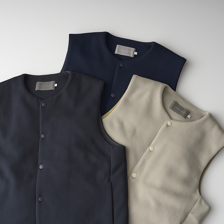 インラインのCURLY&Co.からの注目アイテムは、こちらの中綿入りのベスト。
