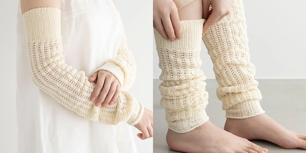 やわらかな編地が心地よく、手足をふんわり包み込むウォーマー。冷えを感じやすい季節に一枚あると重宝します。