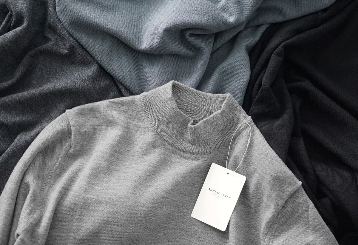 「ムーンキャッスル」の秋冬定番商品で、上質なメリノウールを使用したハイゲージニットのモックネックです。