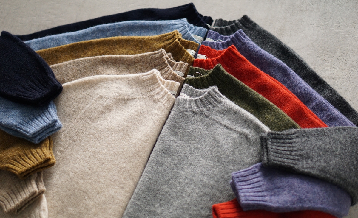 ふわりと軽やかな着心地で、しっかりとした暖かさが魅力のシェットランドウールセーター。継ぎ目のないホールガーメント製法の丁寧な仕上がりです。