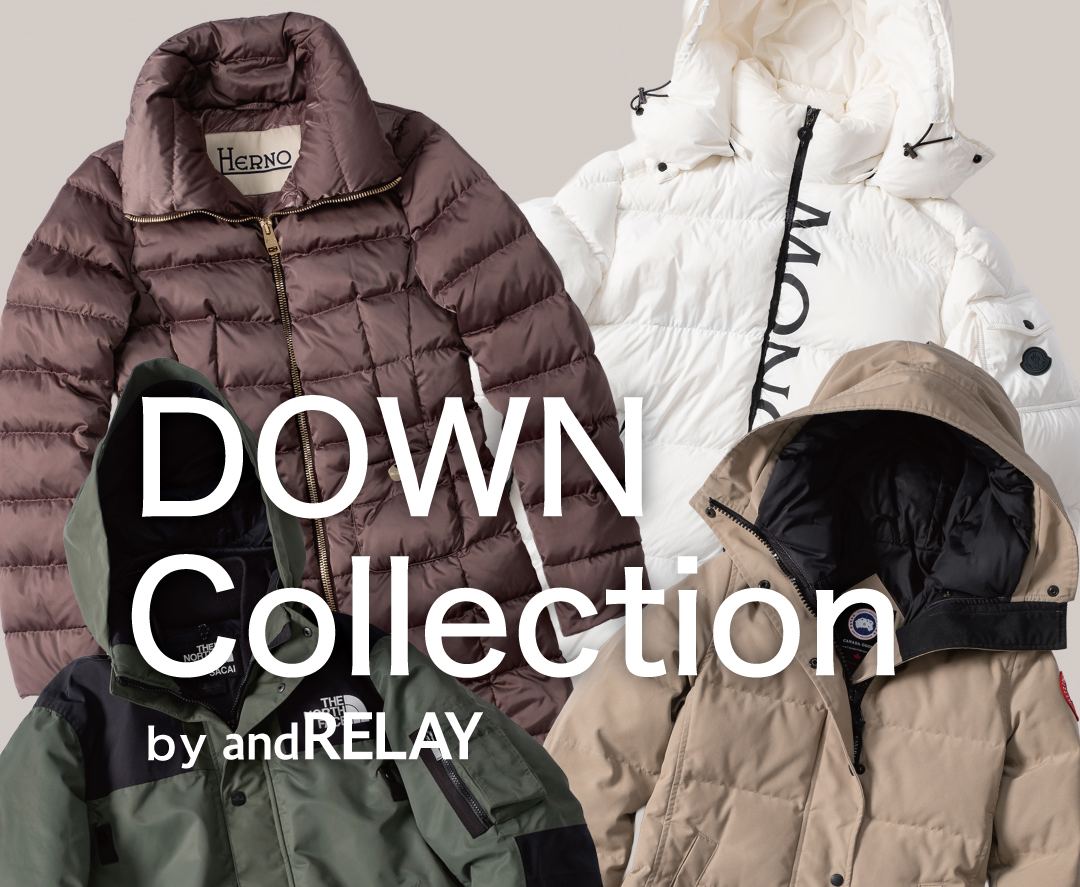 リユース品を取り扱うandRELAYならではの幅広いブランド・デザインのダウンアイテムをご用意いたしました。