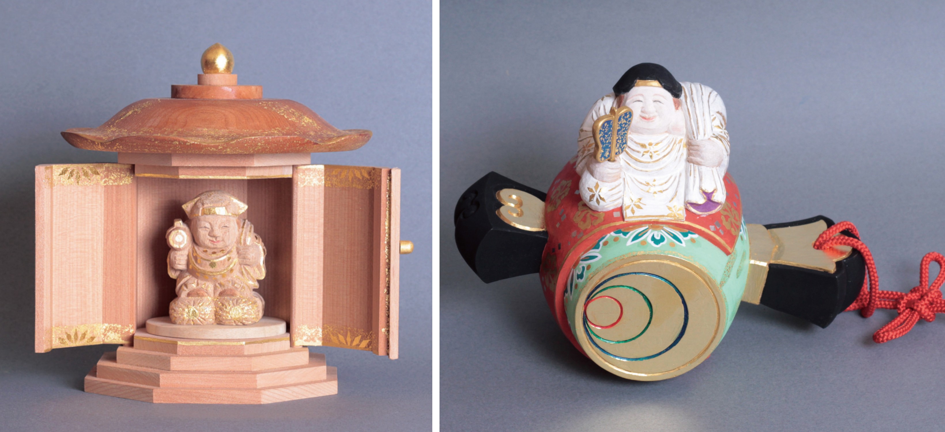 画像左)久保田御季代・唯阿「厨子入 吉大黒」220,000円(税込)総高16cm