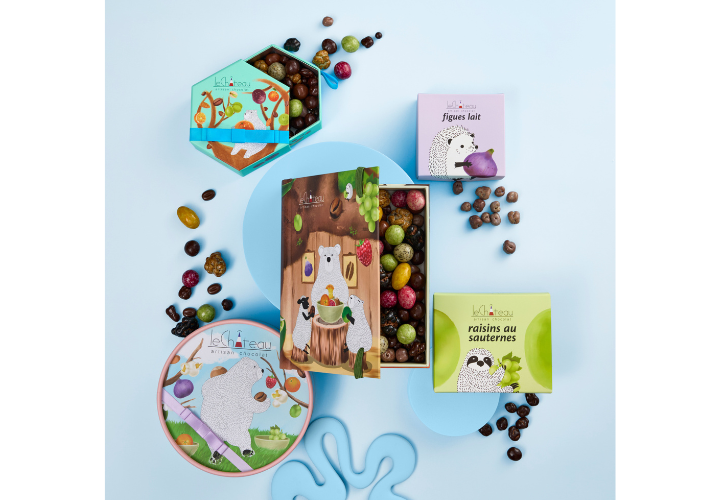 上品な甘口のボルドー産貴腐ワイン漬けレーズンや、太陽を浴びたイチジクやナッツ、コロンビア産アラビカコーヒーなど。さらに、軽い食感のシリアルボールを包んだミルクチョコレートが新登場。伝統的な銅釜製法で、ミルク、ホワイト、カカオ70%のダークなど個々の素材を引き立てるチョコレートで仕上げました。