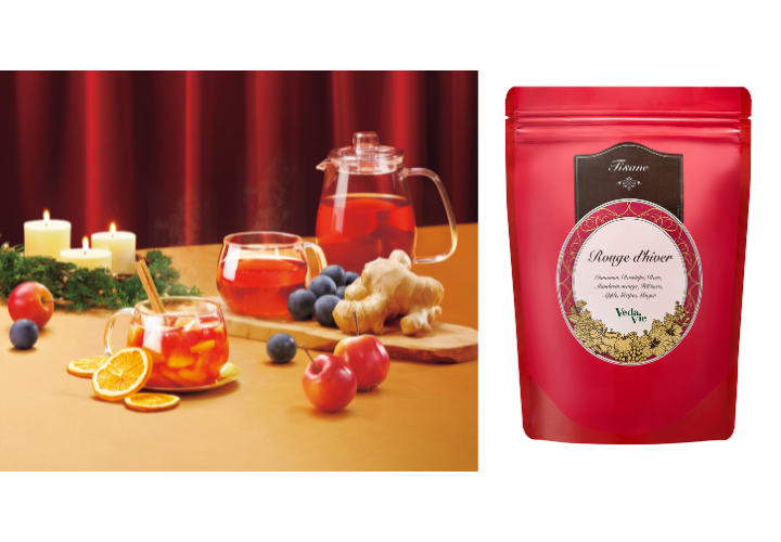 リンゴとマンダリンオレンジの甘い香りに、スパイシーでまろやかな酸味を添えた冬季限定ハーブティ「ウィンターレッド」。深みのあるルビーレッドの色合いと、フルーツのやさしい香りが広がる一杯は、チョコレートの後のリラックスタイムにもぴったりです。お好みでハチミツやフルーツを添えて、ノンアルコールワイン風のアレンジもお楽しみいただけます。